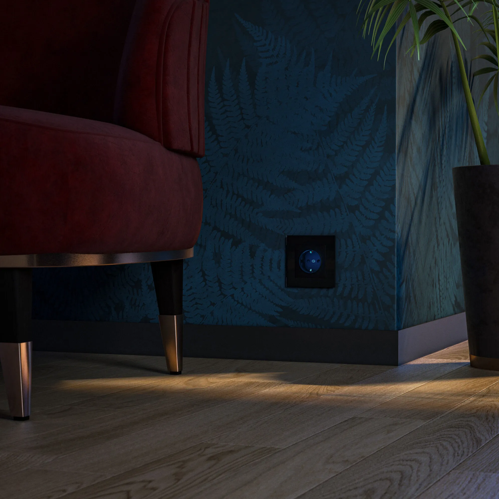 Розетка с подсветкой создает мягкое приглушенное освещение, которое позволяет ориентироваться в помещении в темное время суток и удобно интегрировать вилки бытовых приборов в розеточное гнездо. В качестве подсветки используются экономичные и надежные SMD светодиоды. Подсветка создает равномерное рассеянное свечение, подходящее для использования даже в спальнях и детских. Розетка оборудована защитными шторками, обеспечивающими дополнительную безопасность.