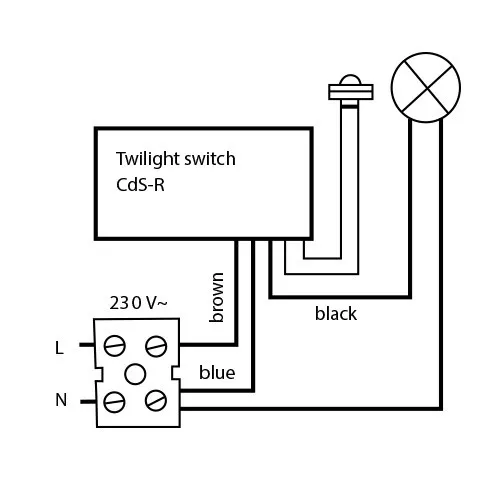 - Сумеречный выключатель LUXOMAT® CdS-R с коммутационным реле и выносным сенсором, для установки в наружные светильники и для использования в распаечных коробках