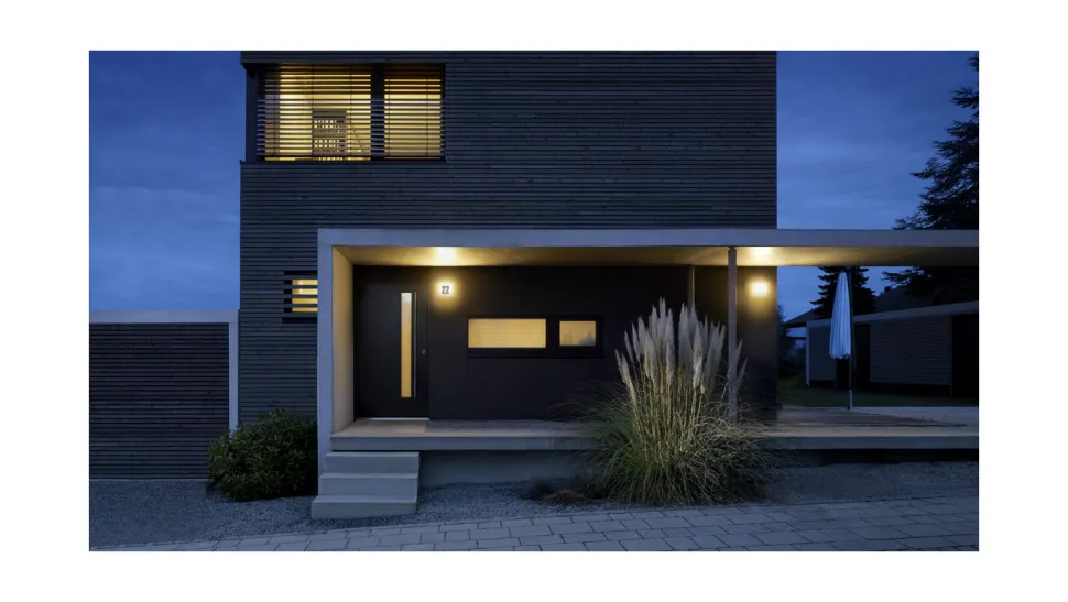 Простое решение - мощный эффект! Светодиодные наружные светильники L 220/224 с сенсорным переключением украшают каждый вход современным дизайном и мягким окружающим освещением. Квадратные светильники обеспечивают оптимальное освещение благодаря современной светодиодной технологии и светоотдаче 410 лм при энергопотреблении 7,5 Вт. Встроенный датчик надежно обнаруживает с углом охвата 180 ° и автоматически включает и выключает свет. L 220 LED имеет большую переднюю поверхность, на которой можно идеально разместить указанные дома.