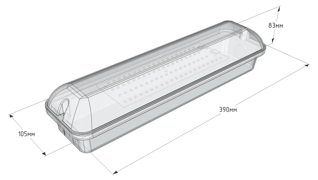 Комплектуется как призматическим, так и опаловым светорассеивателем из поликарбоната.
