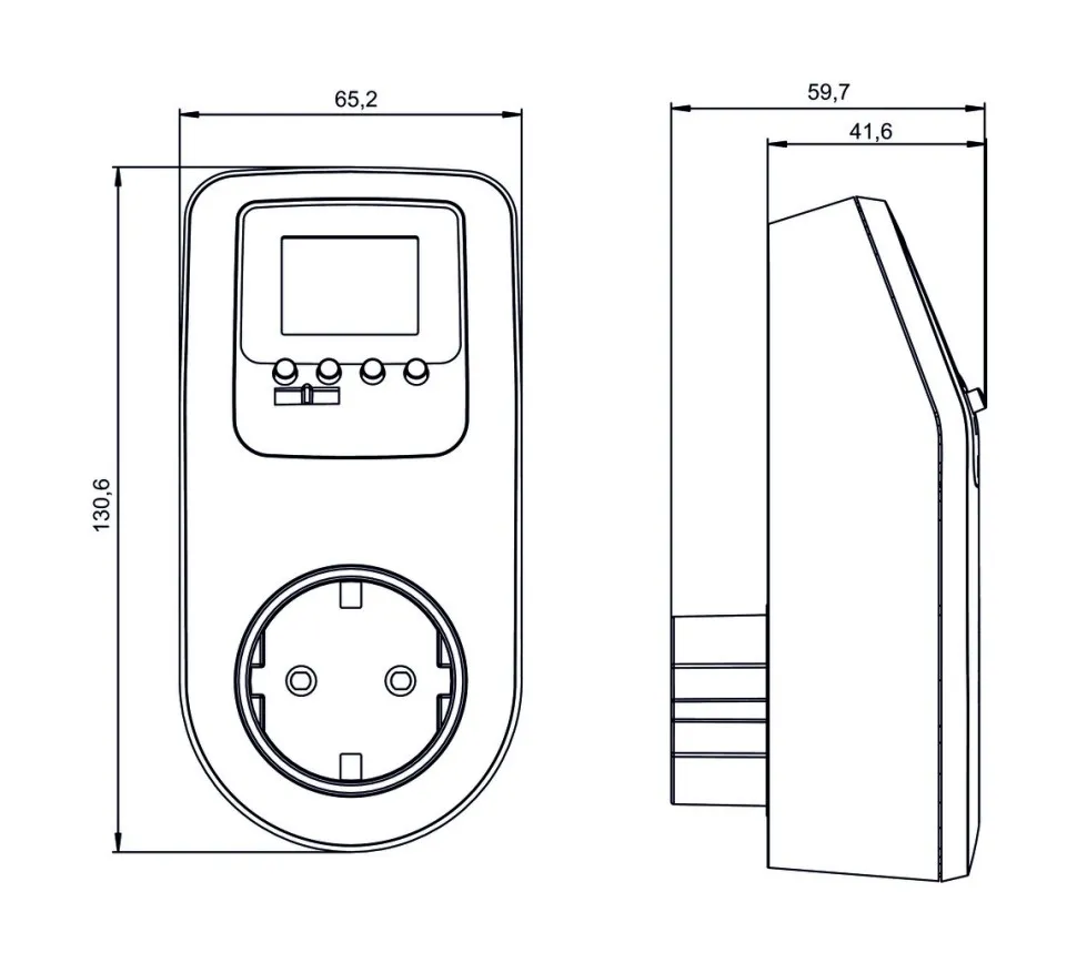 - Простое управление с помощью кнопок для функций программы, дня недели, часа и минуты