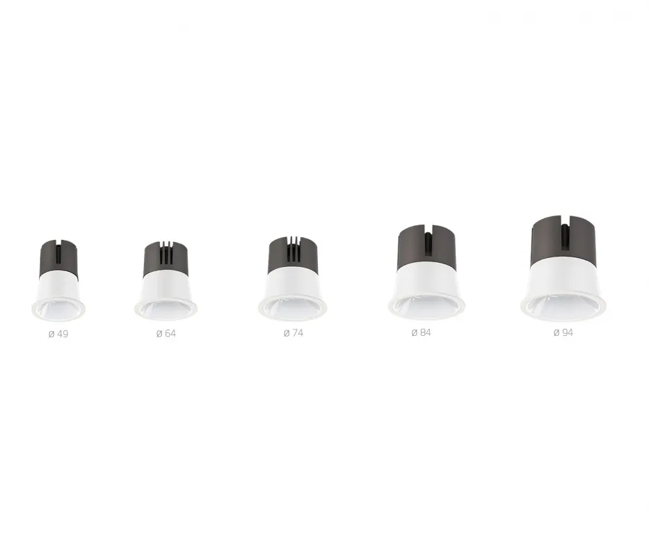 Классические встраиваемые точечные светодиодные светильники круглого сечения.