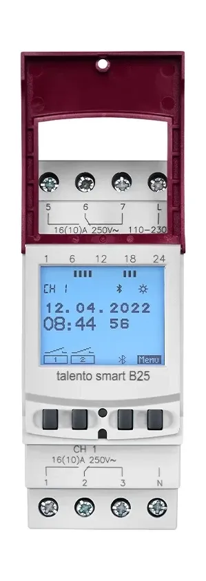 Возможности подключения и средства мобильного программирования делают продукты серии Talento Smart предпочтительными, когда речь идет о приложениях для переключения времени. Компактная конструкция, совместимая с DIN-рейкой, обеспечивает быструю установку в существующей инфраструктуре; в то же время Bluetooth Простое программирование вдали от шкафа управления. Повысьте свою производительность, регулируя время переключения со своего смартфона или планшета с помощью мобильного приложения для Talento Smart (доступно в Google Play и App Store). Астрономический день/ночь Схема с автоматическим определением местоположения обеспечивает быстрое и точное управление.