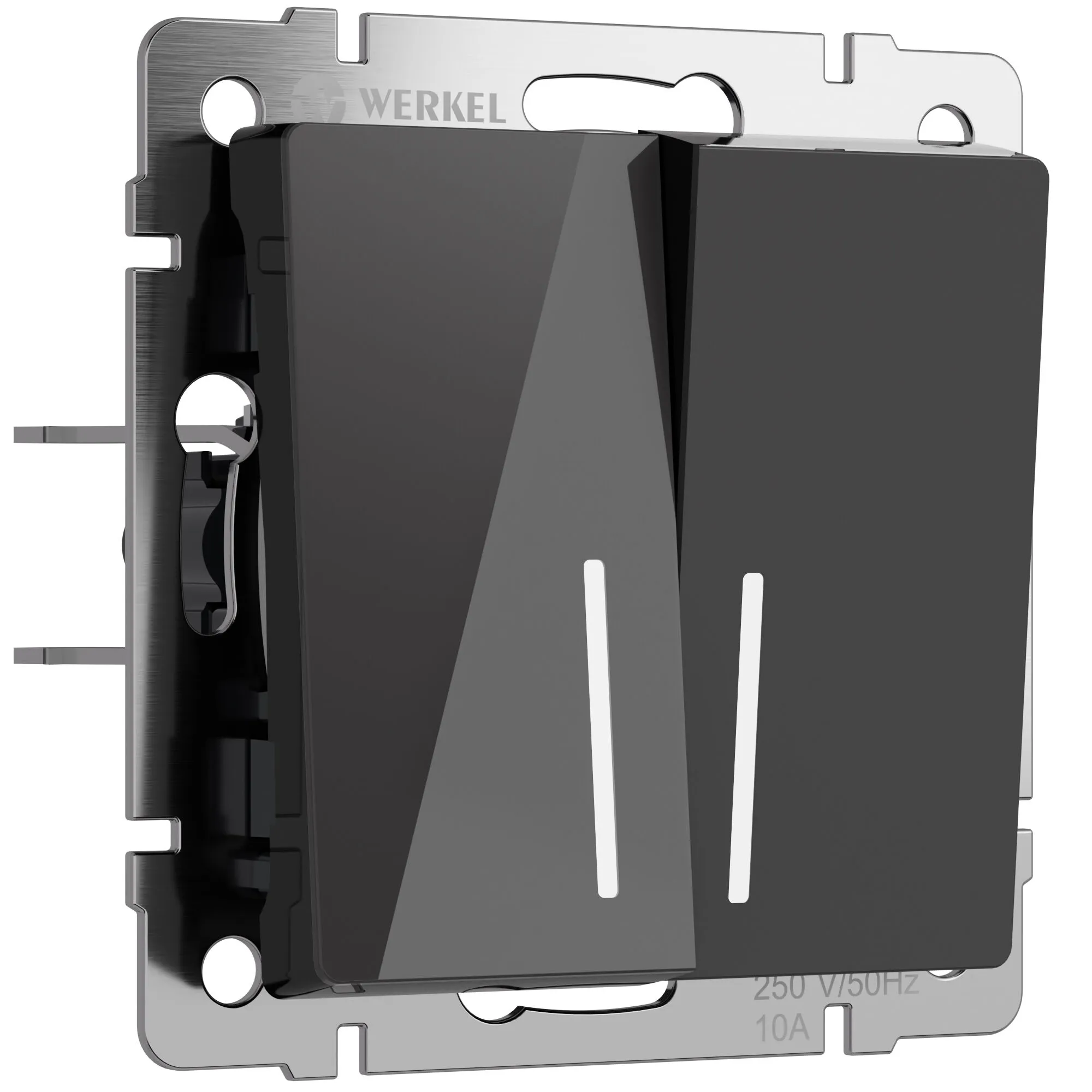 Выключатель двухклавишный с подсветкой (черный акрил) W1120148