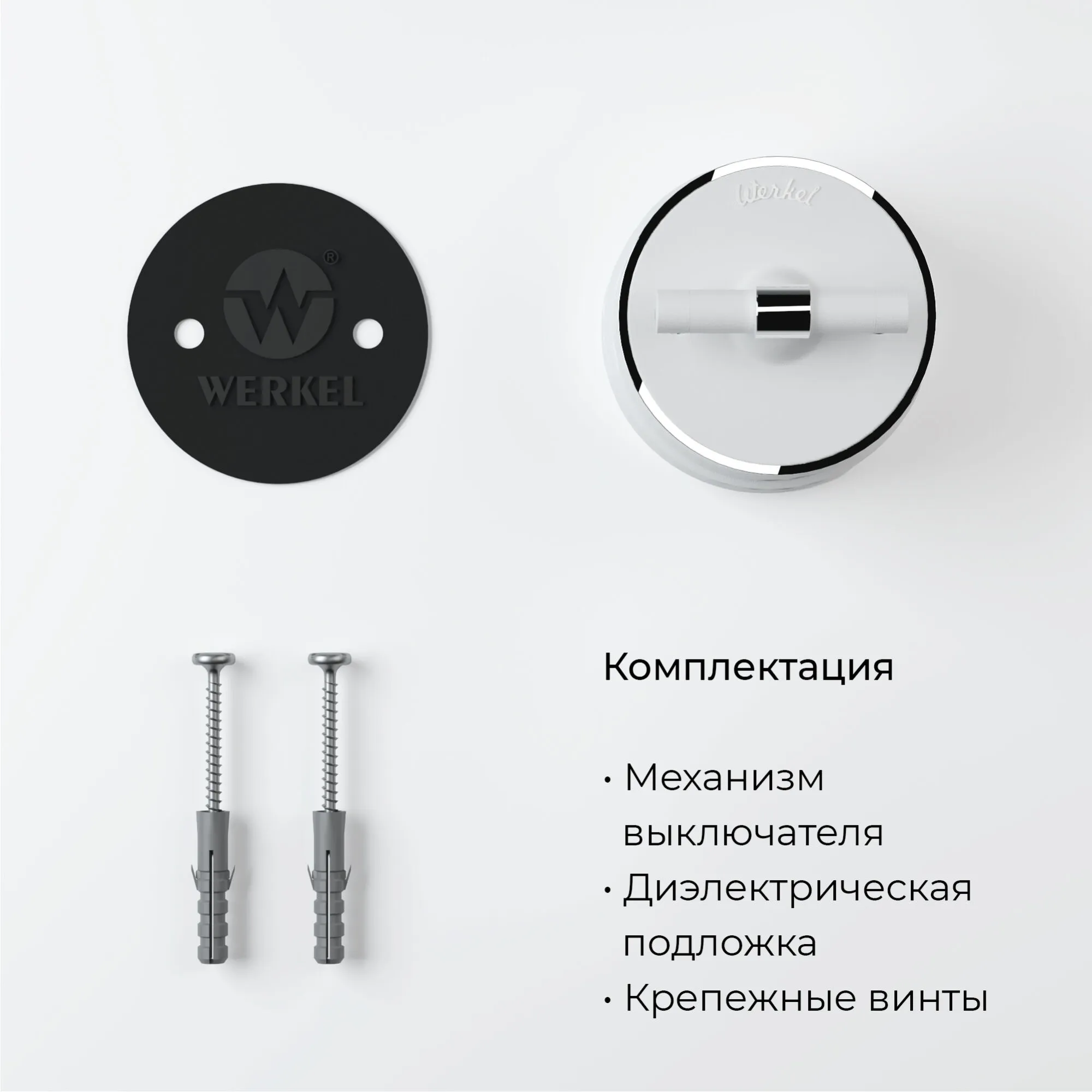 Дополнить образ помогут рамки Werkel из металла, стекла, и дерева, а так же аксессуары для накладного монтажа проводки.