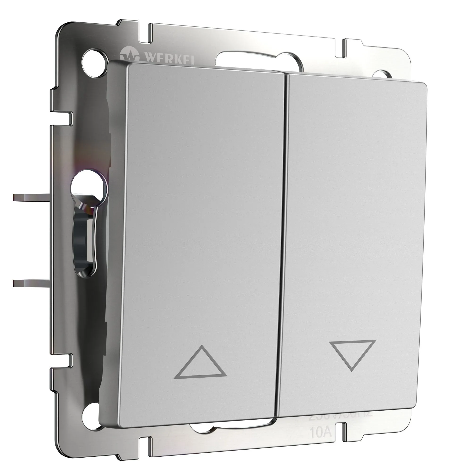 Выключатель без фиксации Werkel предназначен для автоматизации процесса управления электродвигателями жалюзи, рольставен, тентов. При нажатии кнопка подает импульс на электромотор, обеспечивая движение занавеса в определенном направлении. У механизма присутствует блокировка при одновременном нажатии на две клавиши.