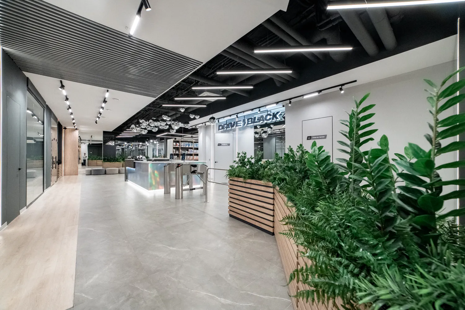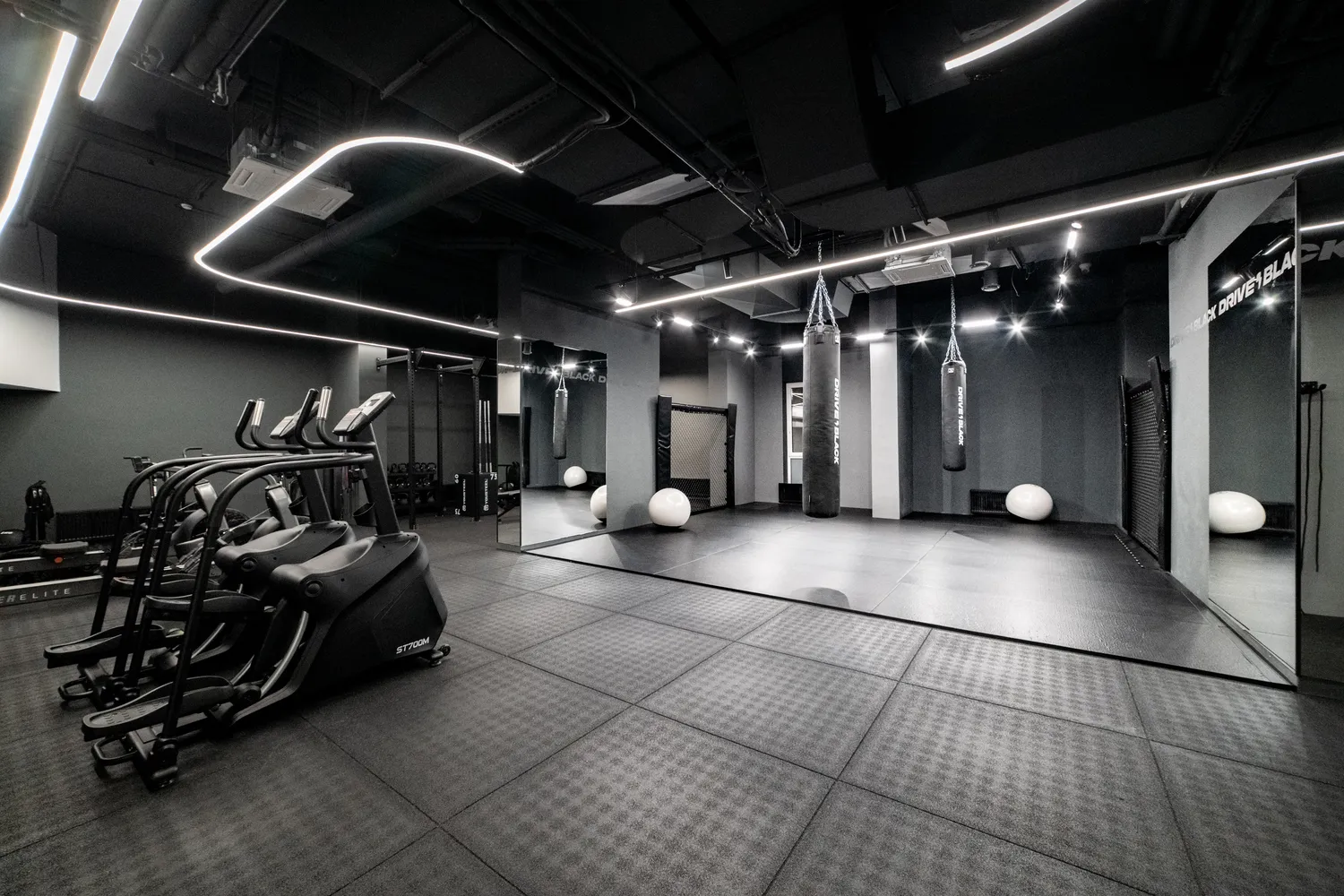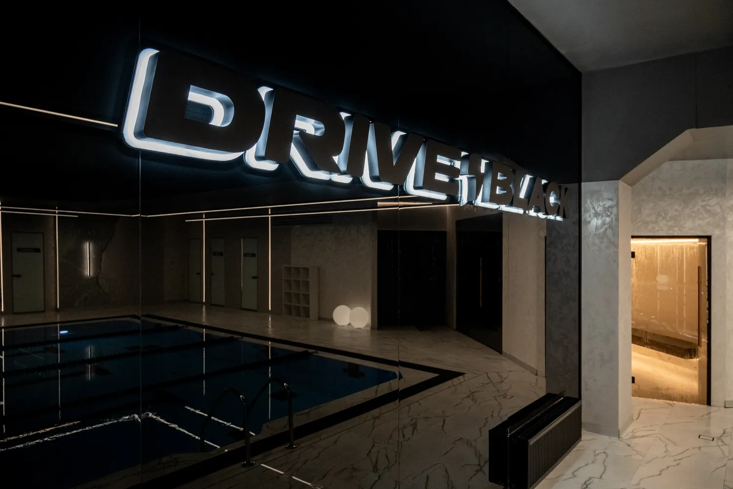 Фитнес-центр премиум-класса Drive Black  общей площадью 2346м2 расположился на цокольном этаже  ЖК Метрополис  в г. Красноярск и включает в себя бассейн, термальные SPA-зоны, тренажерный зал, залы групповых программ, детский клуб, зона единоборства , зона кроссфита. Индивидуально для каждой зоны было подобрано  освещение исходя из всех нюансов проводимых в них активностей.